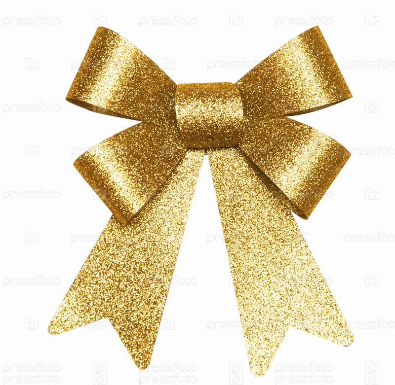 Золотой бант на белом фоне