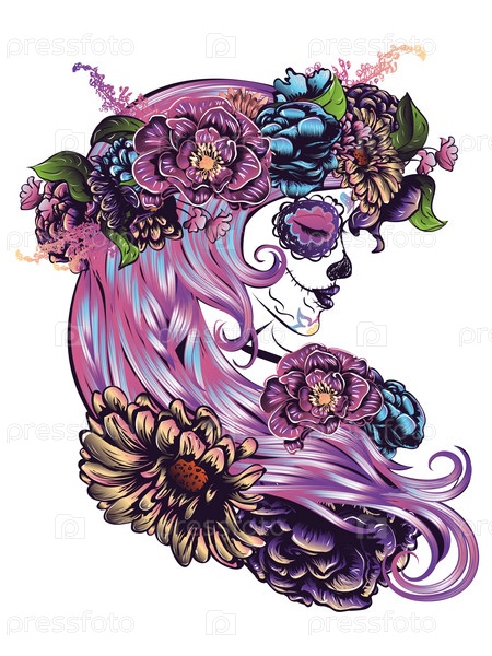 Девушка-череп в цветок Корона