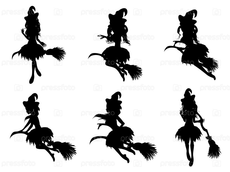 Ведьма с метлой силуэт