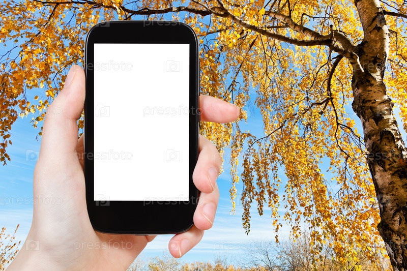 Смартфон и Желтая береза осенью