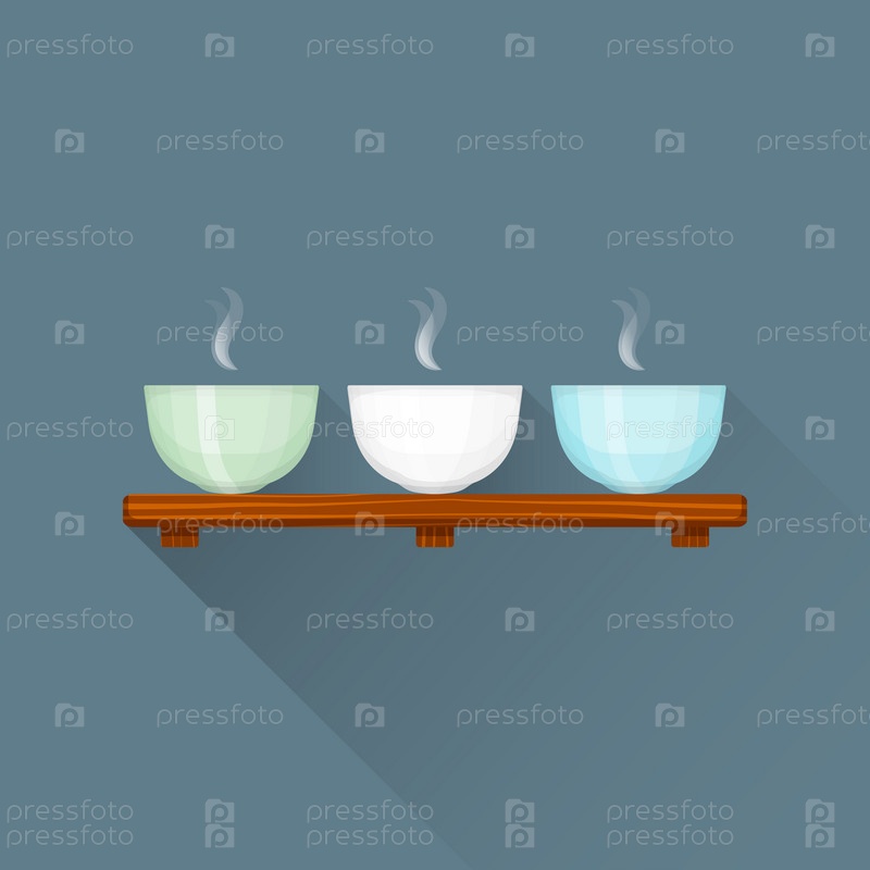 Вектор плоский тройной китайский чай чашки на стенде иллюстрации значок