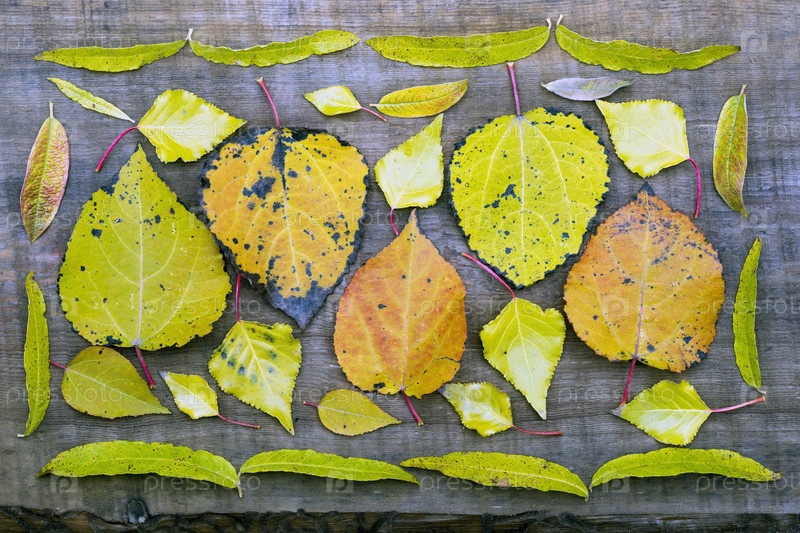 Красочные осенние листья на деревянной поверхности