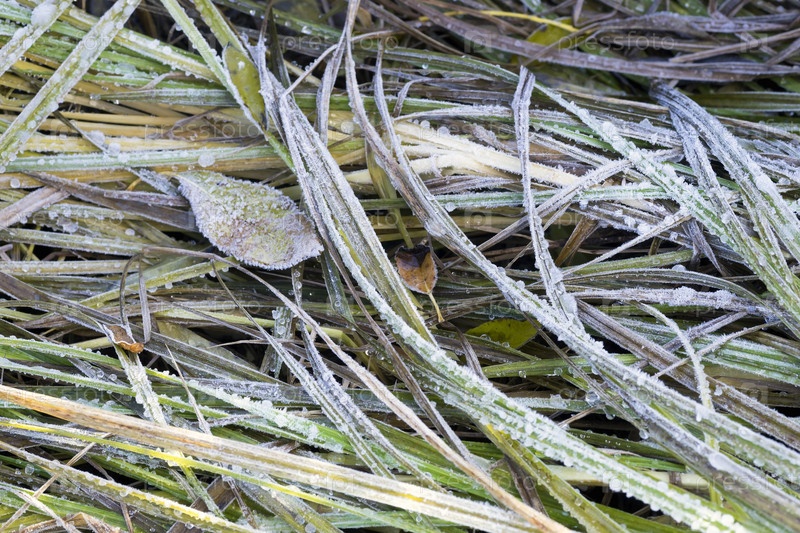 Первый иней на траве в поздней осени