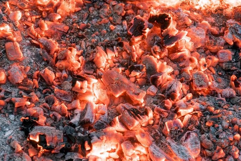 Светящийся красный углей в огне
