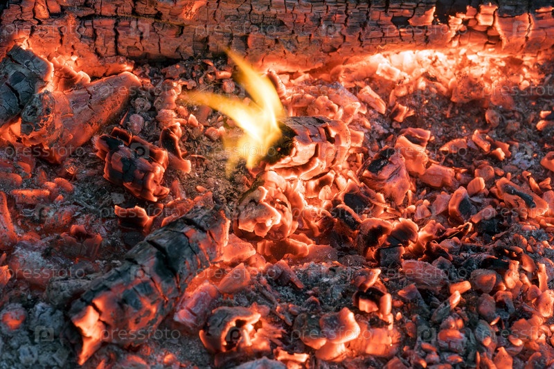 Красивые яркие огонь с горячим углям