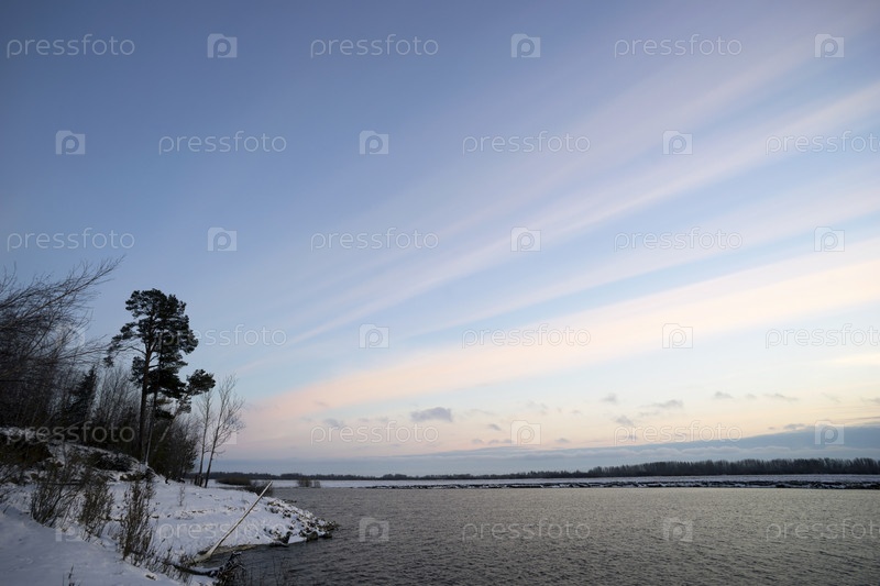 Небесный живописный пейзаж на закате