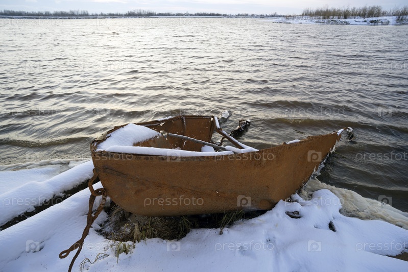 Старая лодка на берегу реки