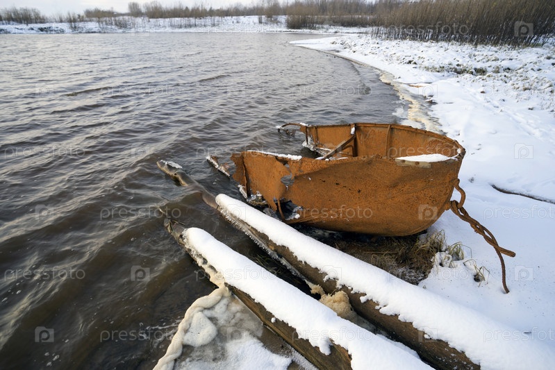 Старая лодка на берегу реки