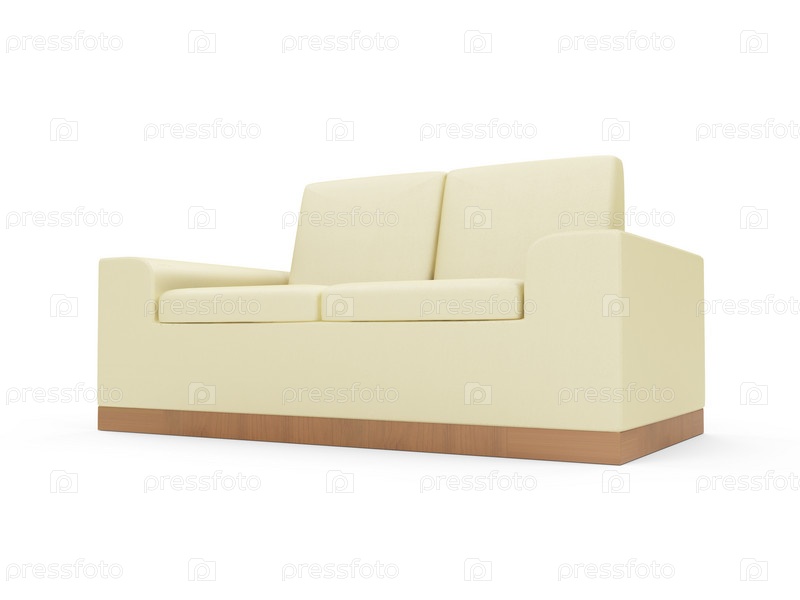 Изолированный бежевый диван на белом фоне