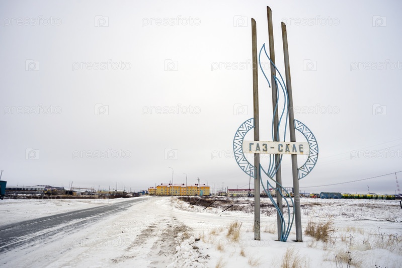 Стела на въезде в село на полуострове Ямал