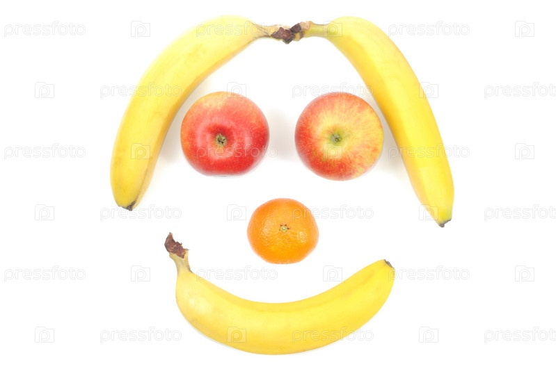 Рожица из спелых фруктов на белом фоне