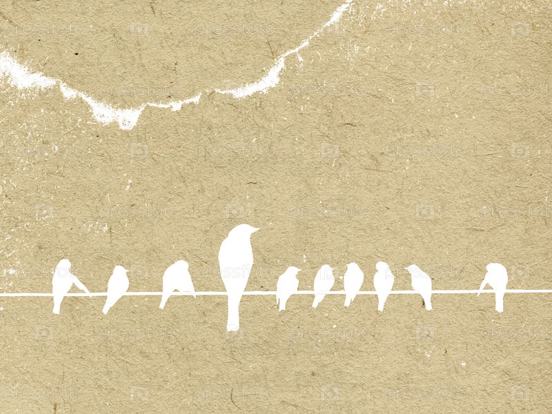 Силуэты городских птиц, сидящих на проводе, на фоне старого холста