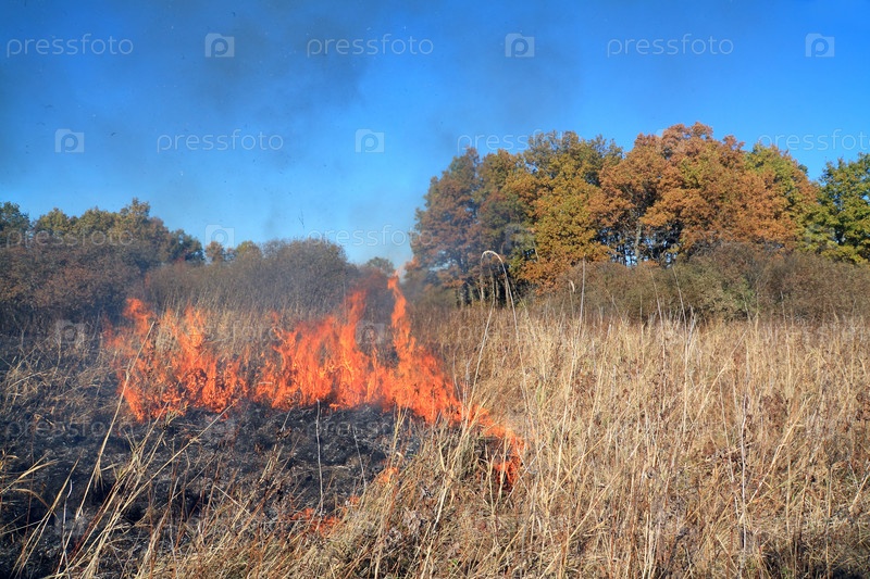 Горящая сухая трава