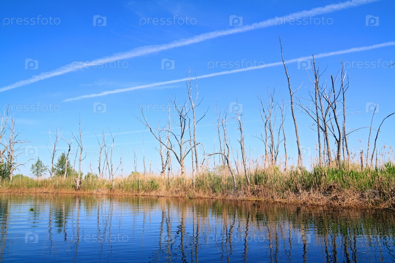 Сухие деревья на берегу реки