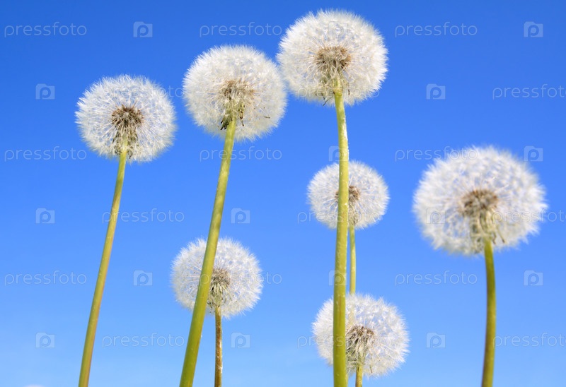 Белые одуванчики на фоне неба