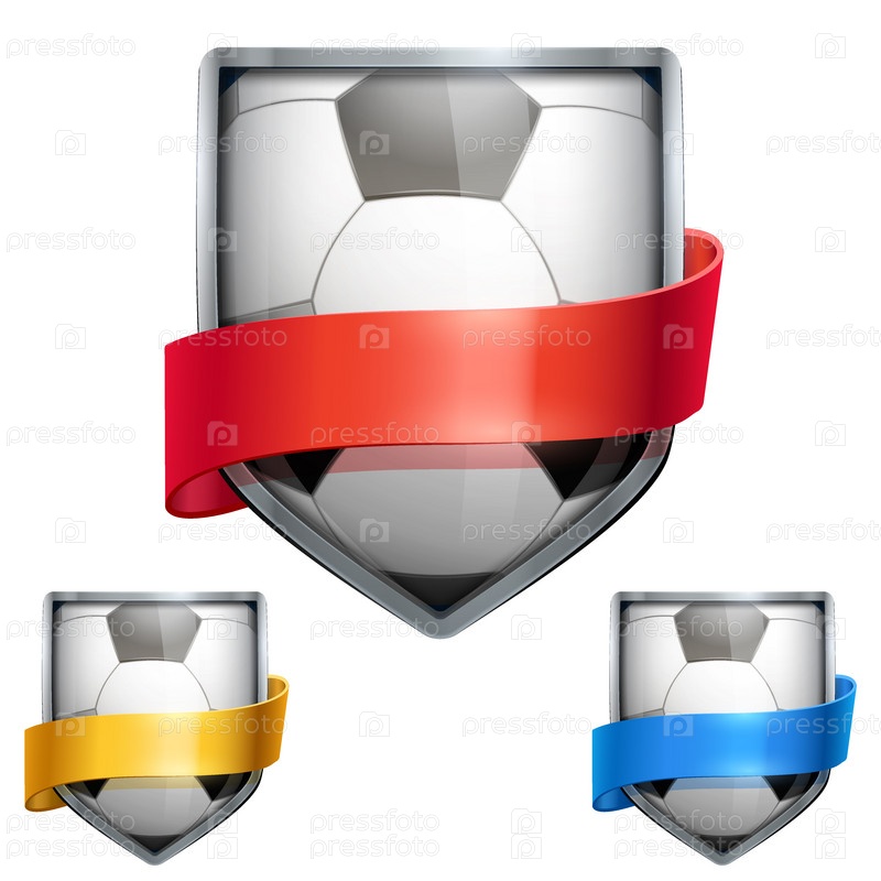 Набор ярких щит в футбол мяч внутри с лентами. Вектор