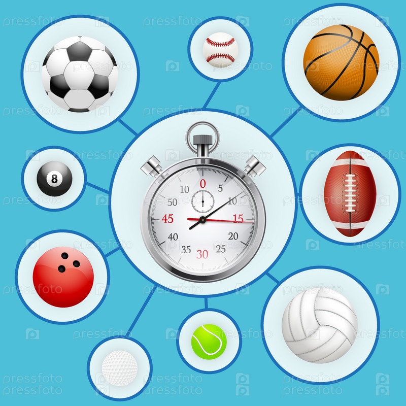 Реалистичные спортивные мячи и секундомер с маркерами