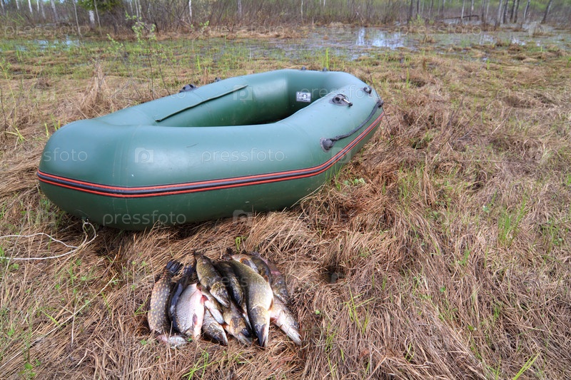 Выловленная рыба около лодки