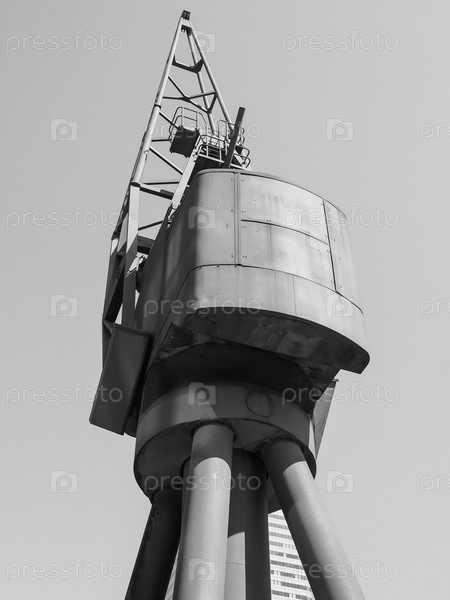 Портовый кран в черно-белом
