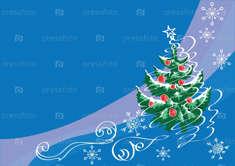 Елка на темно-синем фоне и снежная метель