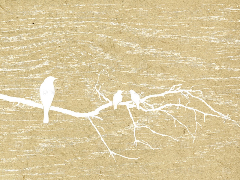 Силуэты птиц, сидящих на дереве, на фоне старой бумаги