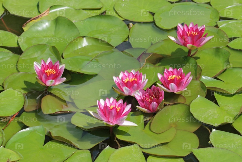 Розовые Нимфеи в пруду