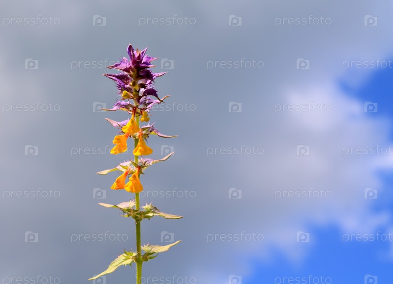 Полевой цветок на фоне темного облака