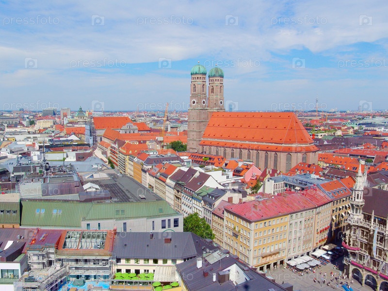 Вид на центр Мюнхена: городские крыши и собор Святой Богородицы