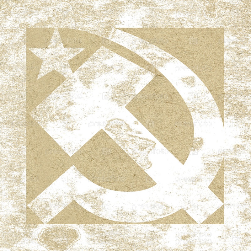 Серп и молот со звездой, нарисованные белой краской на картоне