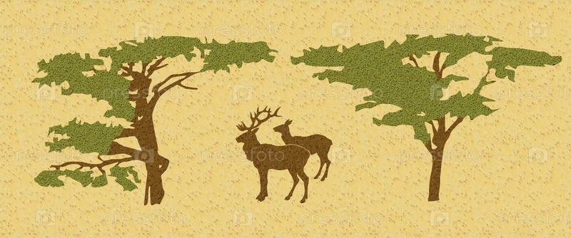 Олени в лесу среди деревьев