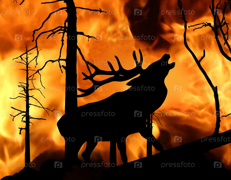 Олень на фоне лесного пожара