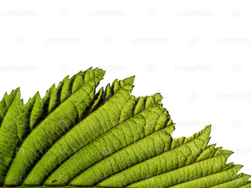 Край листа березы на белом фоне