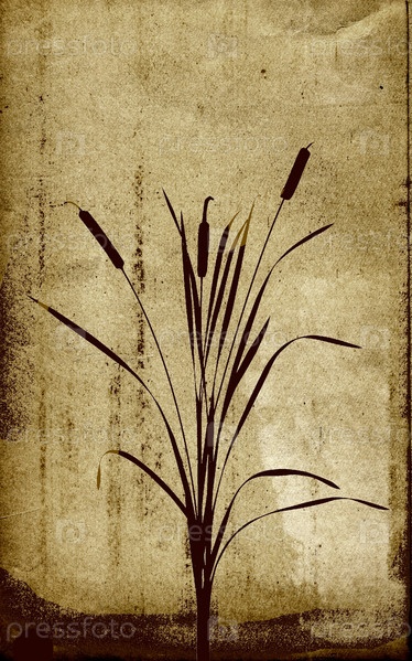 Коричневый контур куста рогоза на картоне
