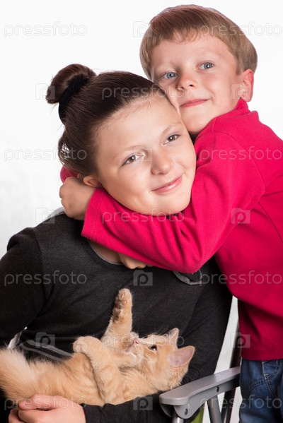 Мальчик и девочка с кошкой