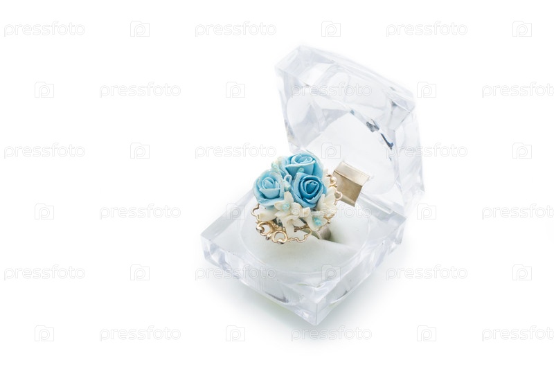 Кольцо с цветами в коробке
