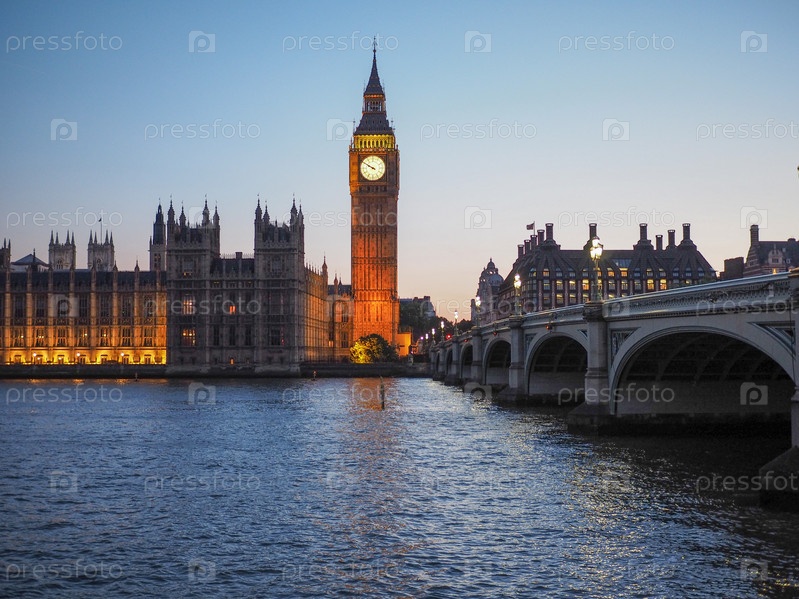 Вестминстерский дворец ночью в Лондоне, Великобритания