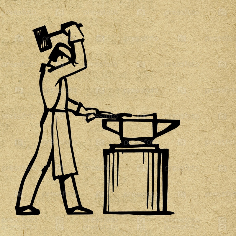 Кузнец за работой на фоне старой бумаги