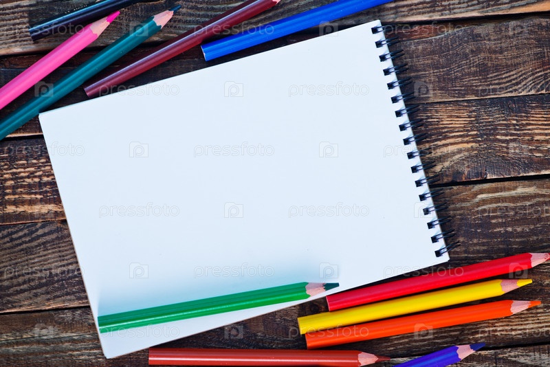 Блокнот и цветные карандаши