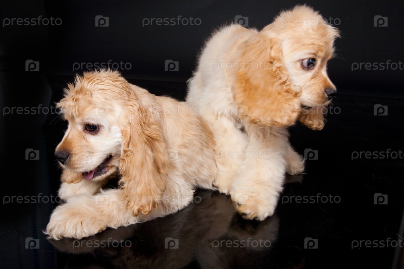 Маленькие кокер-спаниели на черном пластиковом полу