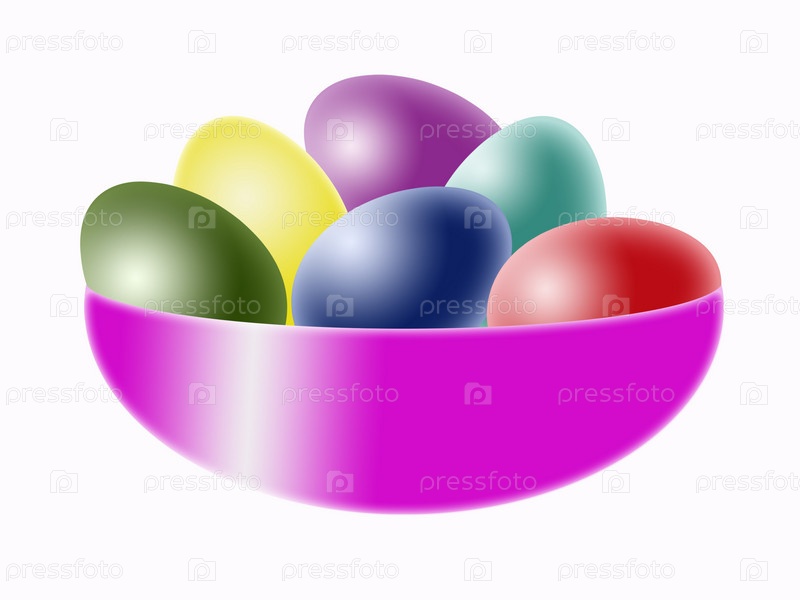Пасхальные яйца в розовой тарелке на белом фоне