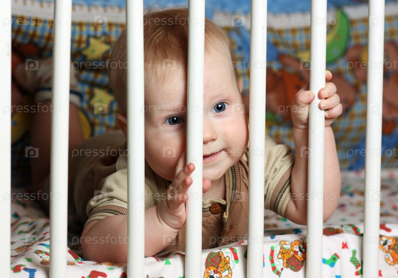 Мальчик в детской кроватке