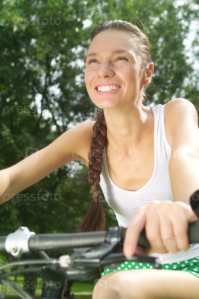 Активная леди катается на велосипеде в парке