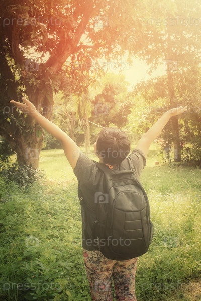 Женщина турист с рюкзаком