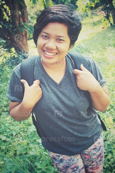 Женщина турист с рюкзаком