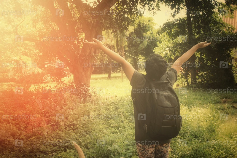 Женщина турист с рюкзаком