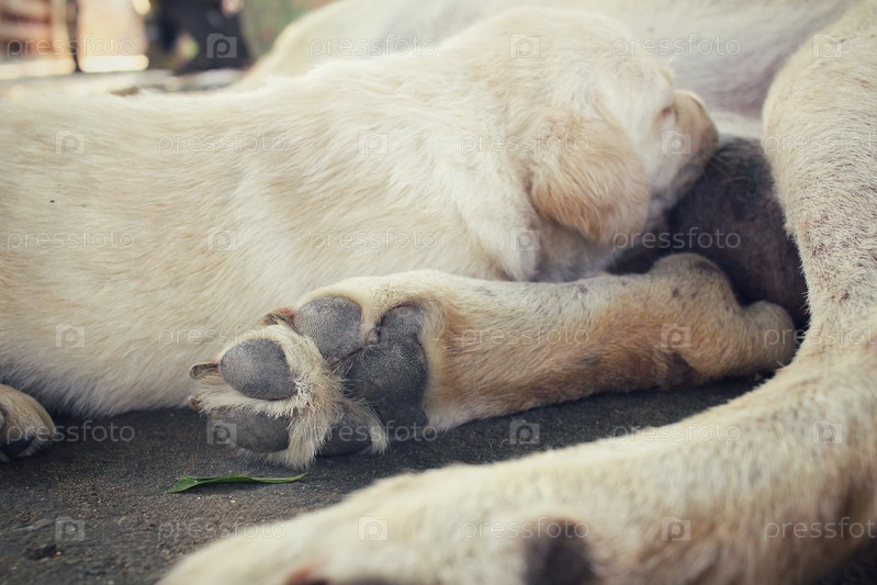 Кормящая мама и щенок