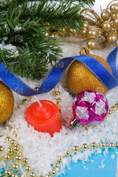 Рождественские украшения в снегу