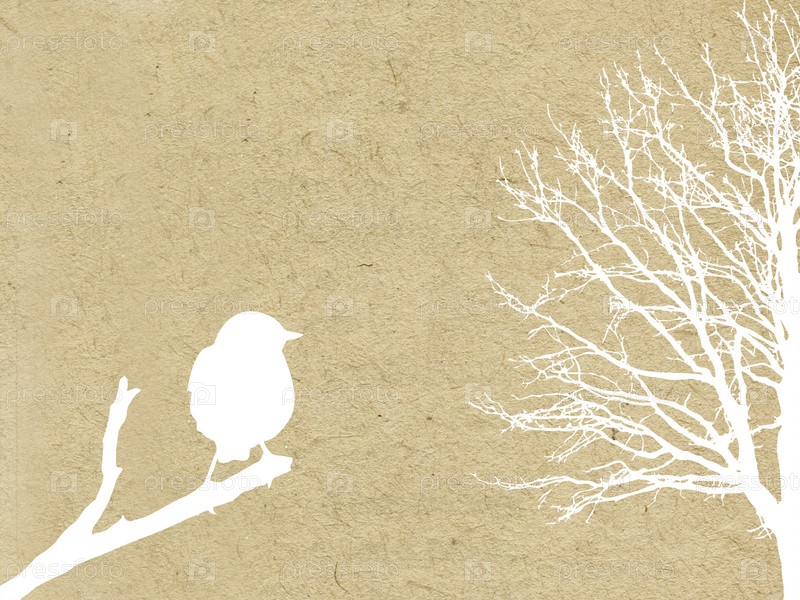 Силуэт дерева и птицы, сидящей на ветке, на фоне старого холста