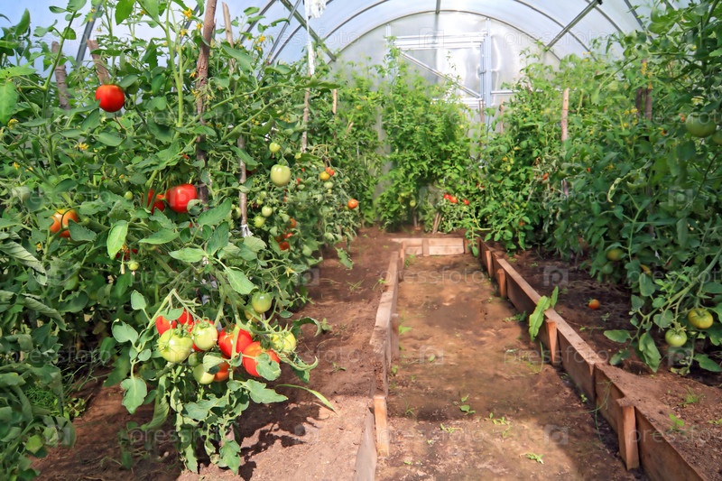 Красные и зеленые помидоры в теплице