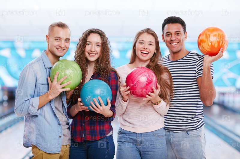 Друзья с боулинг шарами